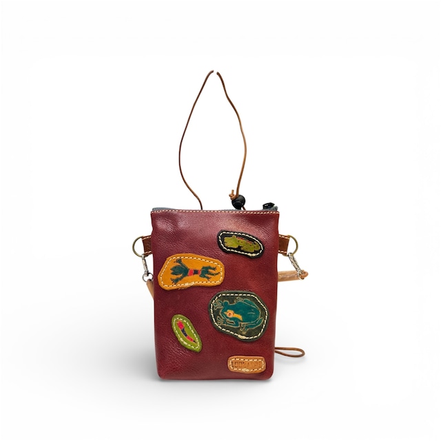 ポシェット No.1 牛革を使用しております。 革ワッペンはヌメ牛革に電気ペンで絵を描き、革専用の染料で着色しています。 直接手描きとなりますので、柄は一点物となります。 裁断、縫い、仕上げまで、すべてハンドメイドでお作りしています。 【サイズ】 本体 縦・約8㎝ 横・上約18㎝ 横・下約15cm マチ・約5㎝ 【ショルダー】 レザーショルダー ナスカンで取り付けてある為取り外しも可能です。 取り外し、ポーチとしてもお使い頂けます。 ハンドメイド品につき、多少のゆがみ等があります。 本革なので、使用していくと少しの伸び等がでます。 ご理解よろしくお願いいたします。 基本的にノークレーム・ノーリターンとさせていただきます。 使い始めは色落ちの可能性があります。 白色のお鞄、お洋服などにはお気をつけ下さい。 ご了承ください。 その他ご相談がございましたら、ご連絡下さい。 牛革ポーチ、チェーンのみ発送となります。 よろしくお願いいたします。 本体 5,500円 ワッペン 1,600円 ショルダー 7,000円 合計 14,100円 税込 15,510円