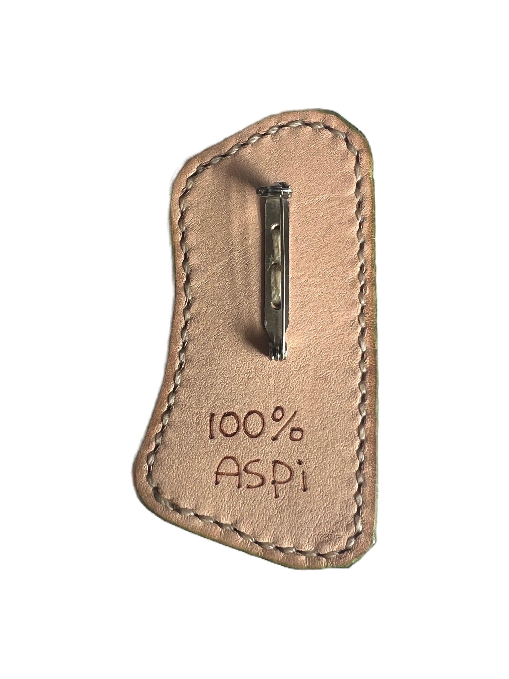 ヌメ牛革に電気ペンで絵を描き、革専用の染料で着色しています。