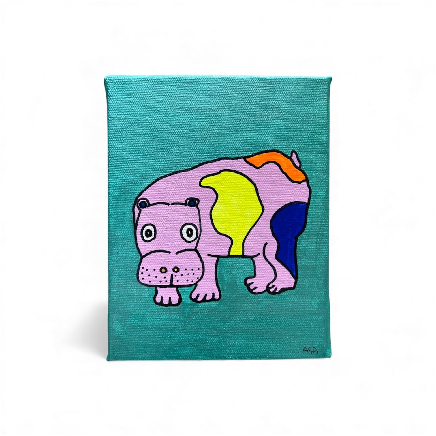 180mm×140mmのFOサイズキャンバスにアクリル絵の具と油性ペンを使って絵を描きました。