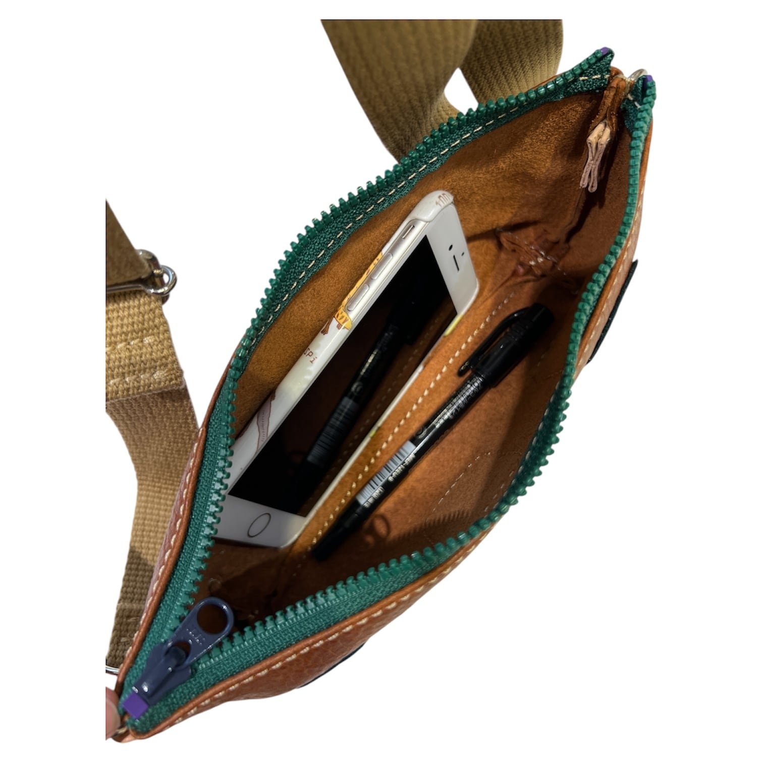 革ワッペンはヌメ牛革に電気ペンで絵を描き、革専用の染料で着色しています。