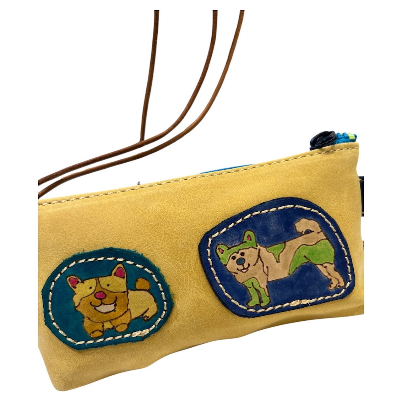 革ワッペンはヌメ牛革に電気ペンで絵を描き、革専用の染料で着色しています。