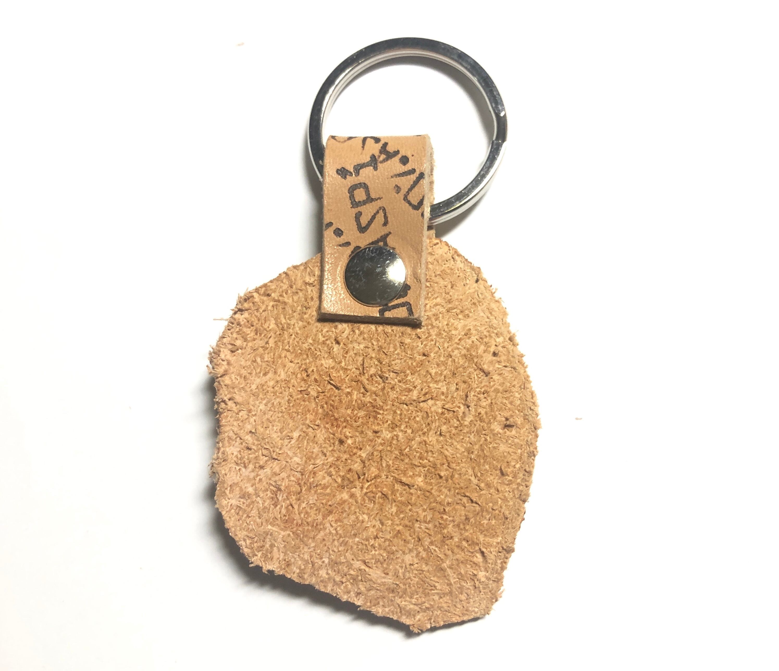 ヌメ牛革に電気ペンで絵を描き、革専用の染料で着色しています。