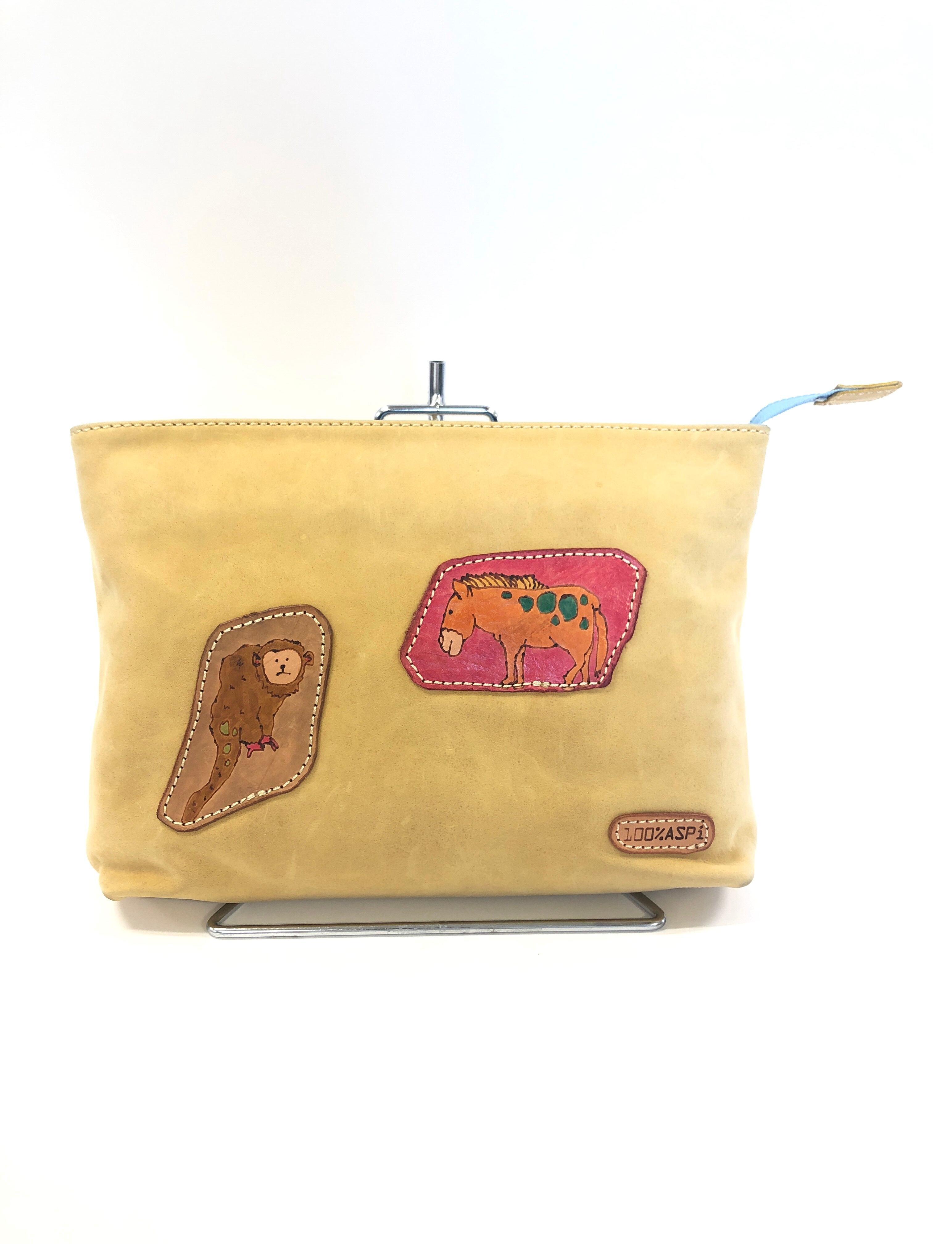 革ワッペンはヌメ牛革に電気ペンで絵を描き、革専用の染料で着色しています。