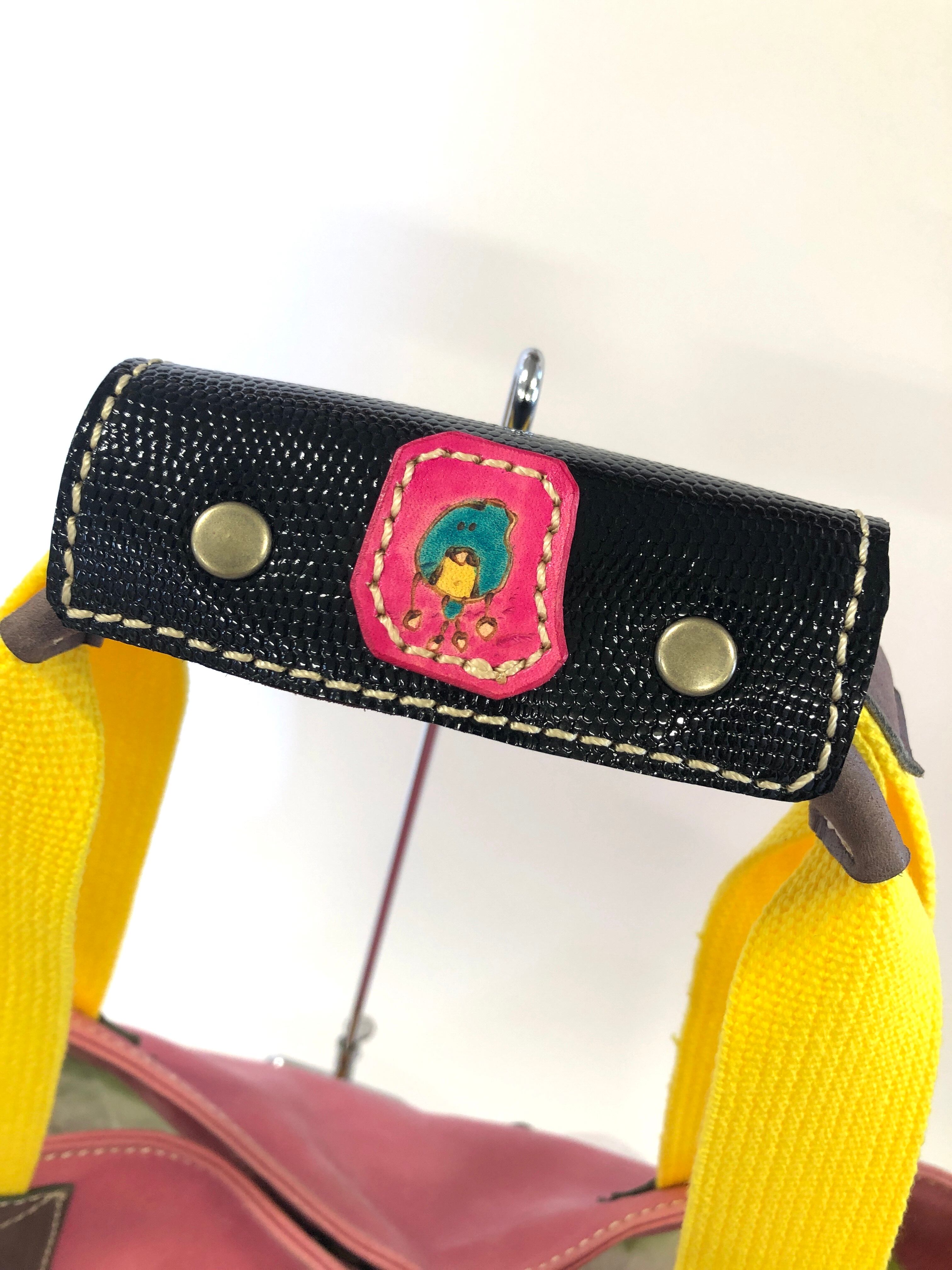 革ワッペンはヌメ牛革に電気ペンで絵を描き、革専用の染料で着色しています。