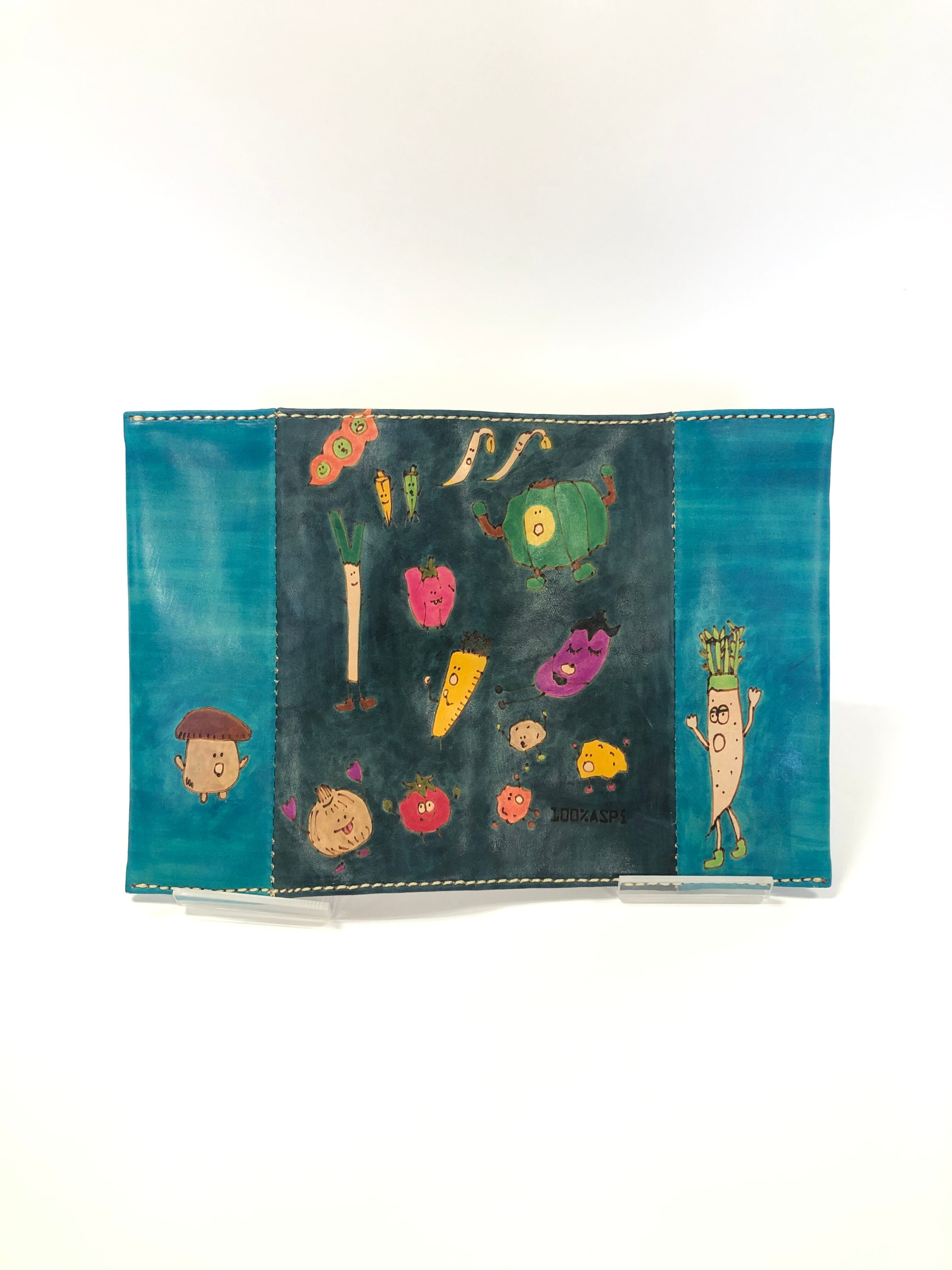 牛ヌメ革に電気ペンで絵を手描きしております。