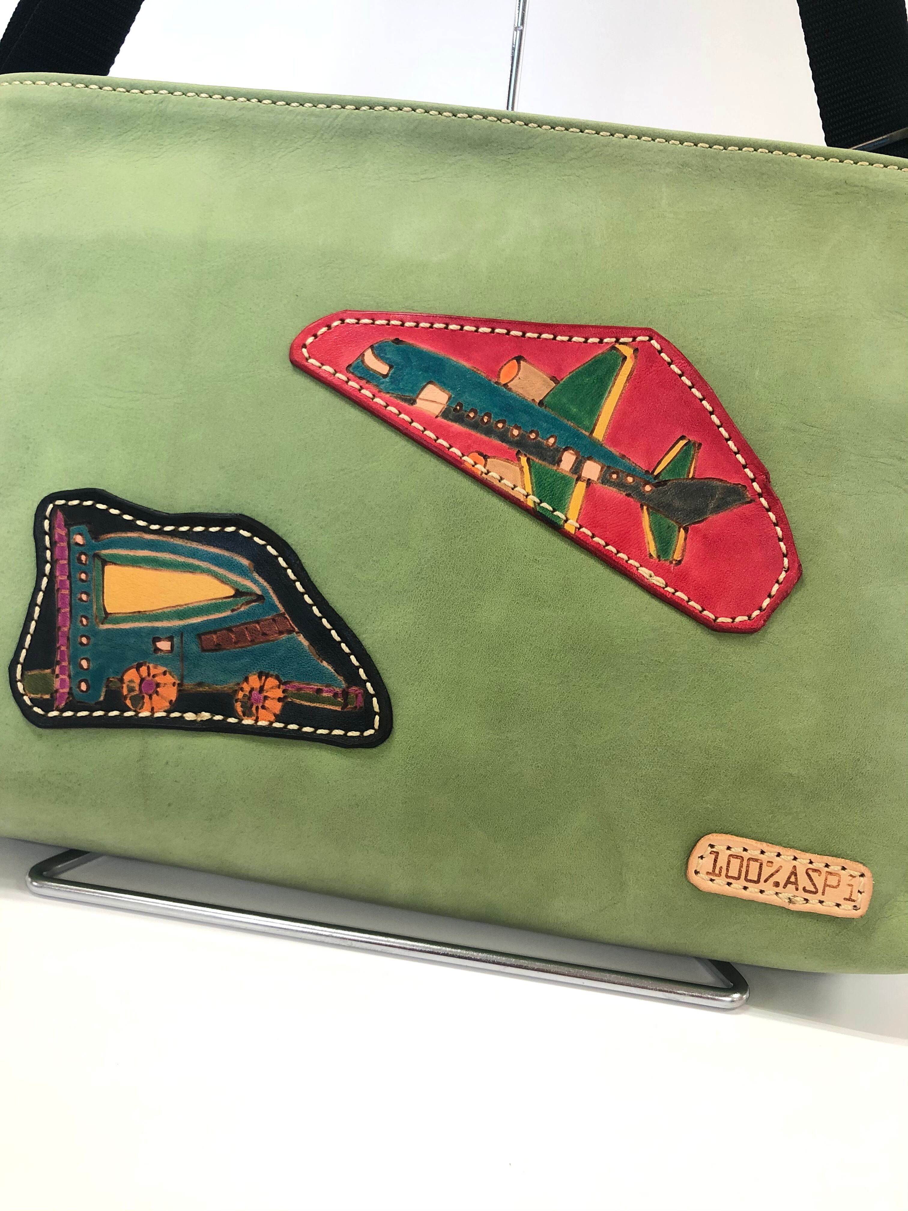 革ワッペンはヌメ牛革に電気ペンで絵を描き、革専用の染料で着色しています。