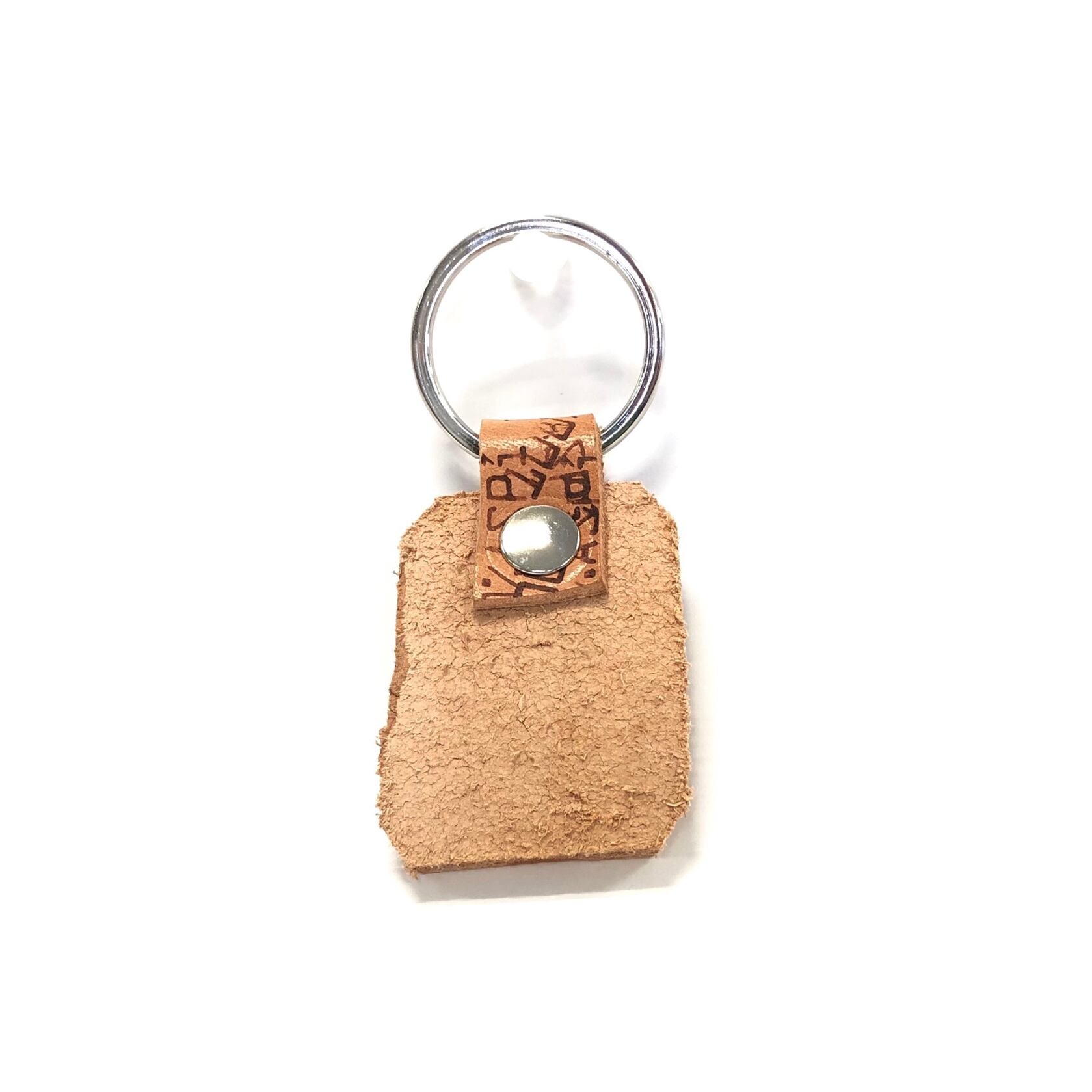 ヌメ牛革に電気ペンで絵を描き、革専用の染料で着色しています。