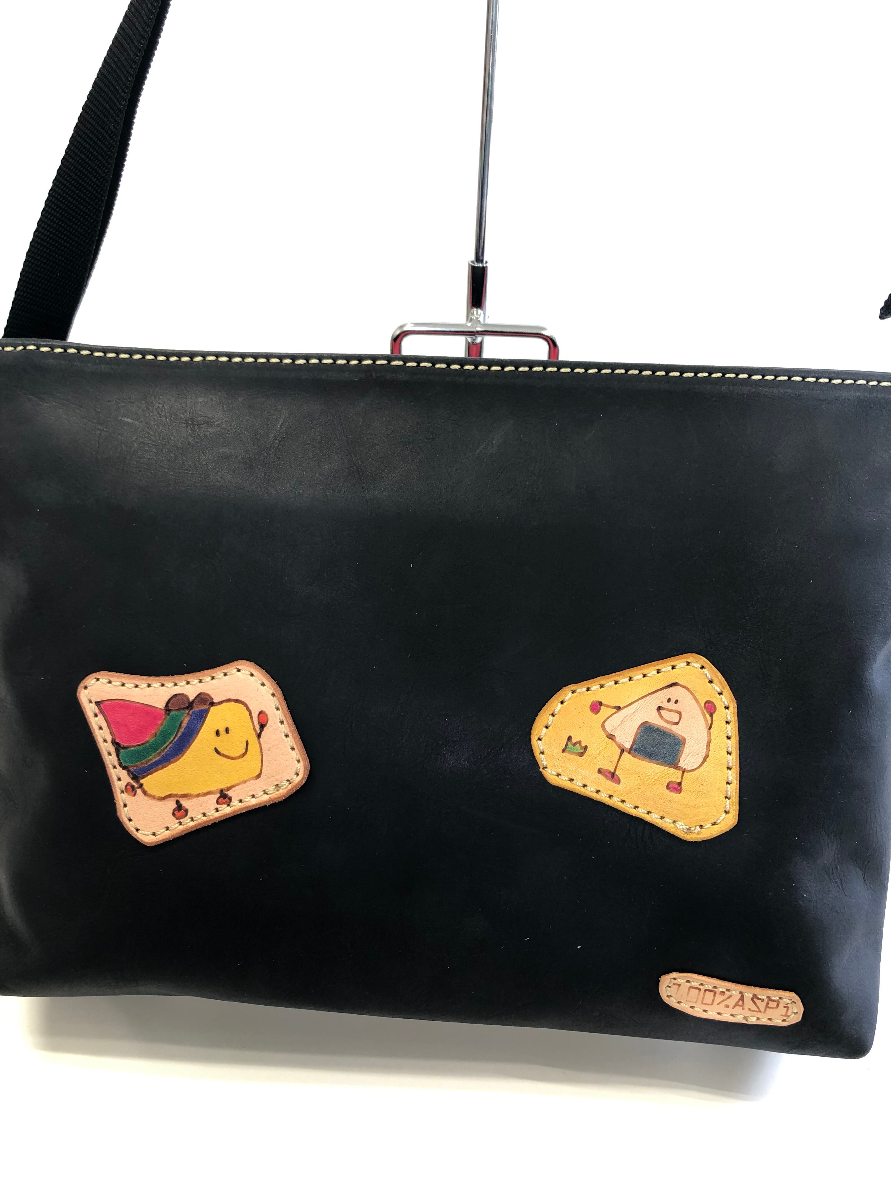 革ワッペンはヌメ牛革に電気ペンで絵を描き、革専用の染料で着色しています。