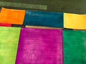 100%ASPiが手描きした革ワッペン、手染めした革を使って