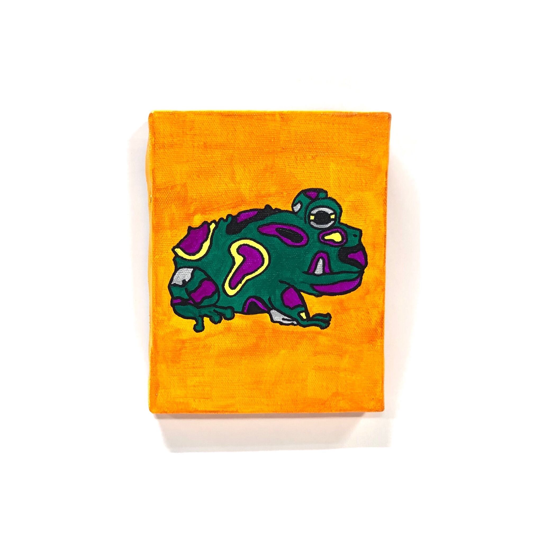 180mm×140mmのFOサイズキャンバスにアクリル絵の具と油性ペンを使って絵を描きました。