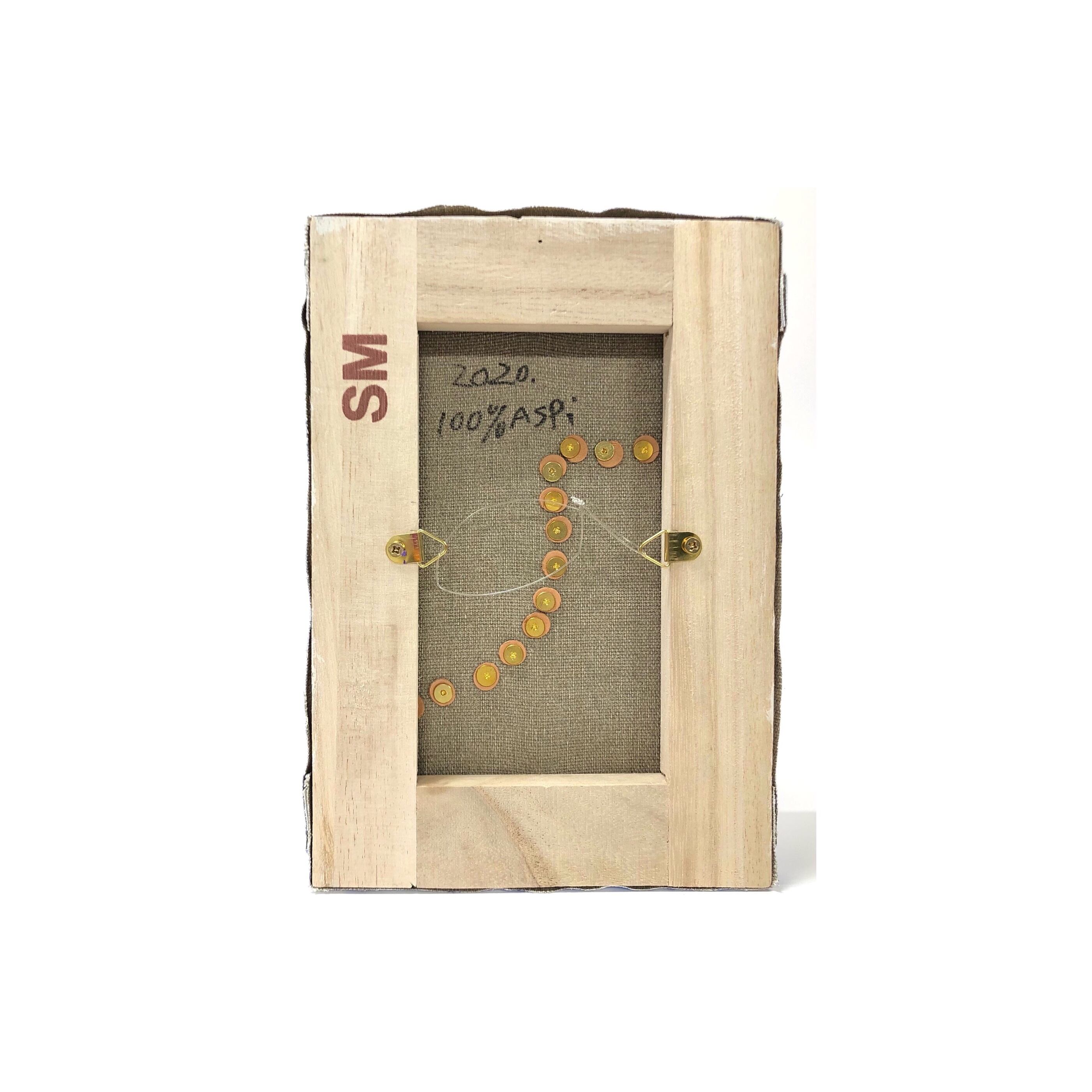 227mm×158mmのSMサイズキャンバスにアクリル絵具と油性ペンとスタッズを使って絵を描きました。