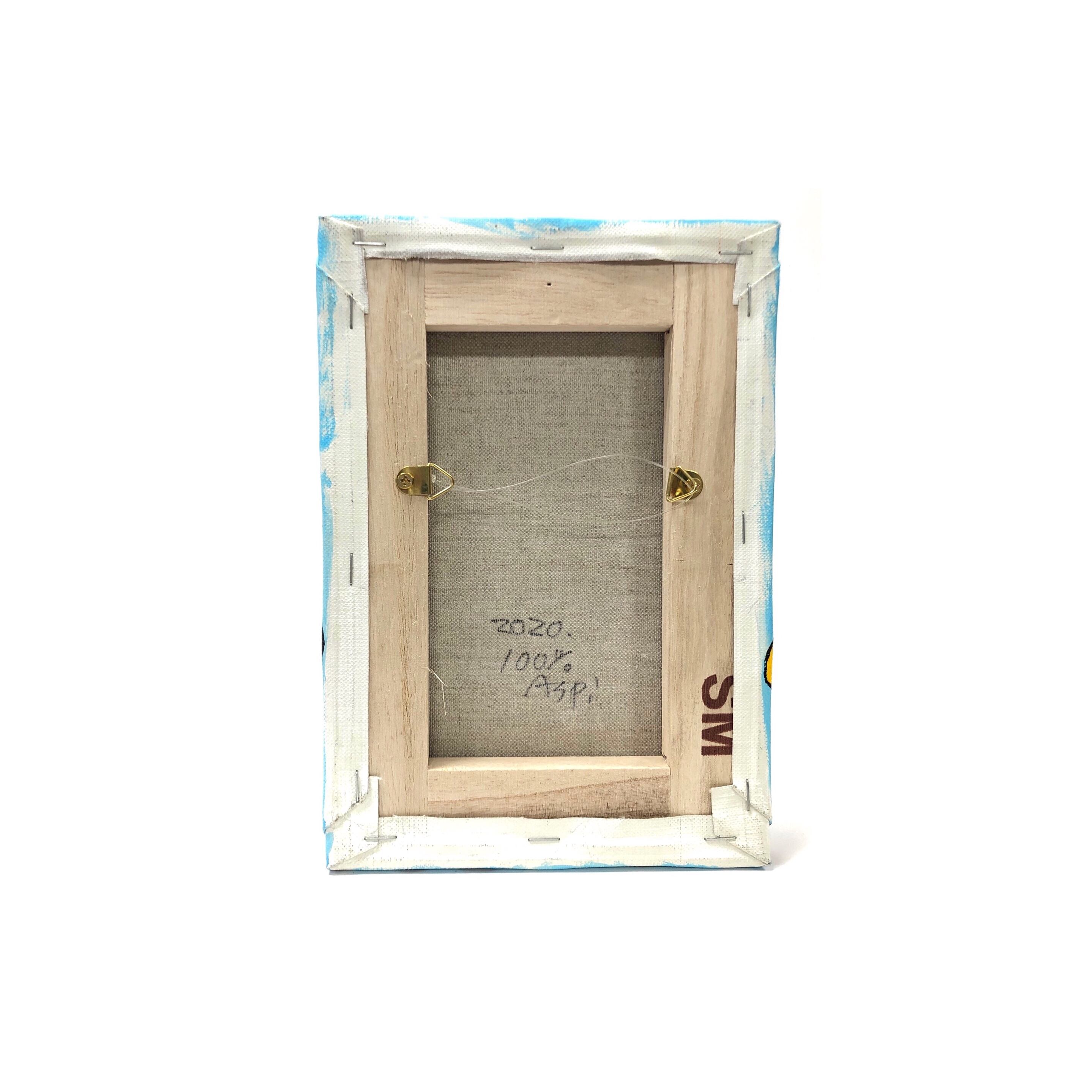 227mm×158mmのSMサイズキャンバスにアクリル絵具と油性ペンと目玉を使って絵を描きました。