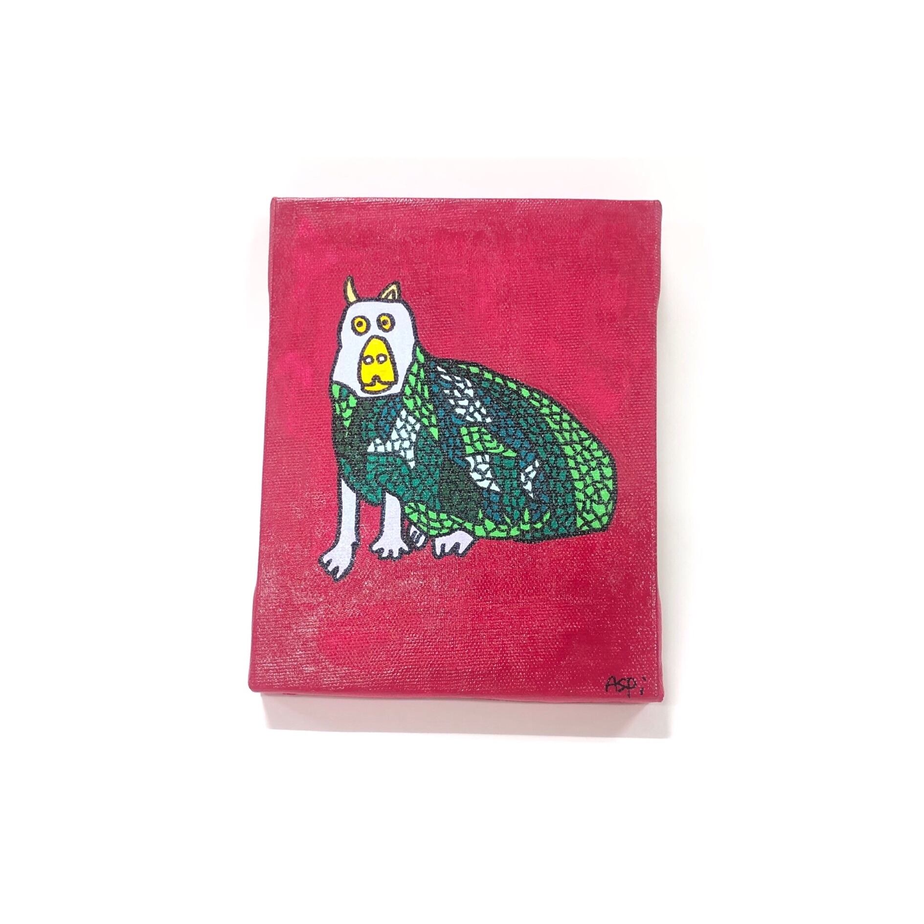 180mm×140mmのFOサイズキャンバスにアクリル絵の具と油性ペンを使って絵を描きました。