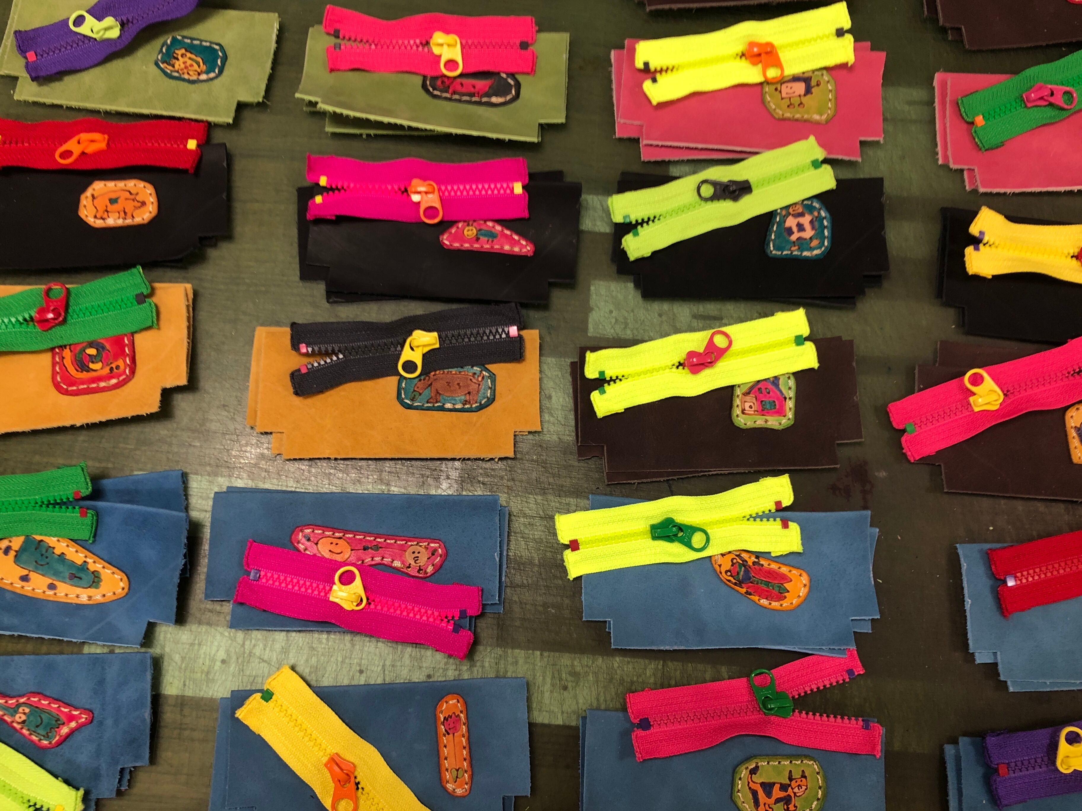 革ワッペンはヌメ牛革に電気ペンで絵を描き、革専用の染料で着色しています。