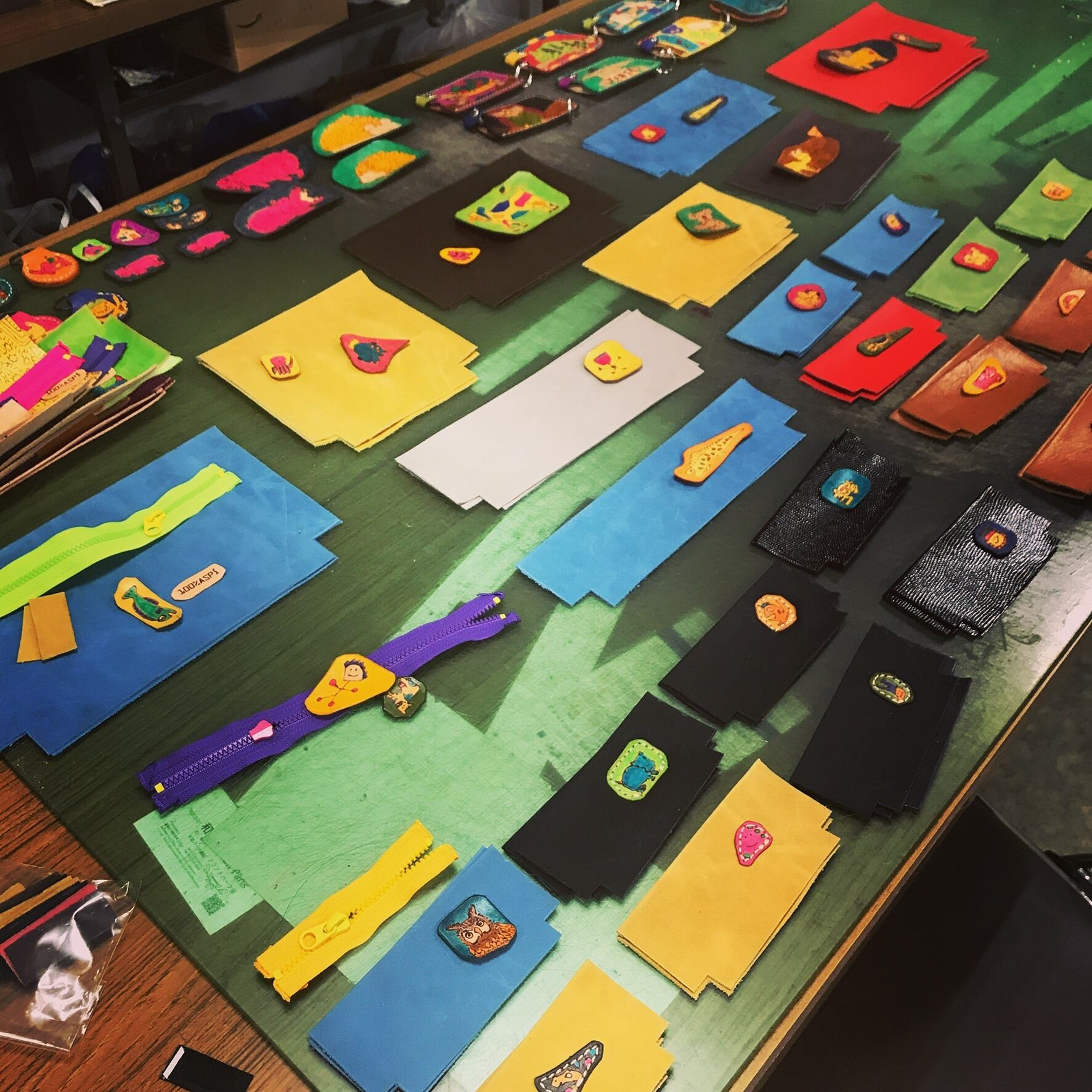 革ワッペンはヌメ牛革に電気ペンで絵を描き、革専用の染料で着色しています。