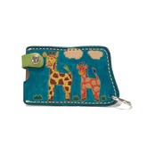 ヌメ牛革に電気ペンで絵を描き、革専用の染料で着色しています。