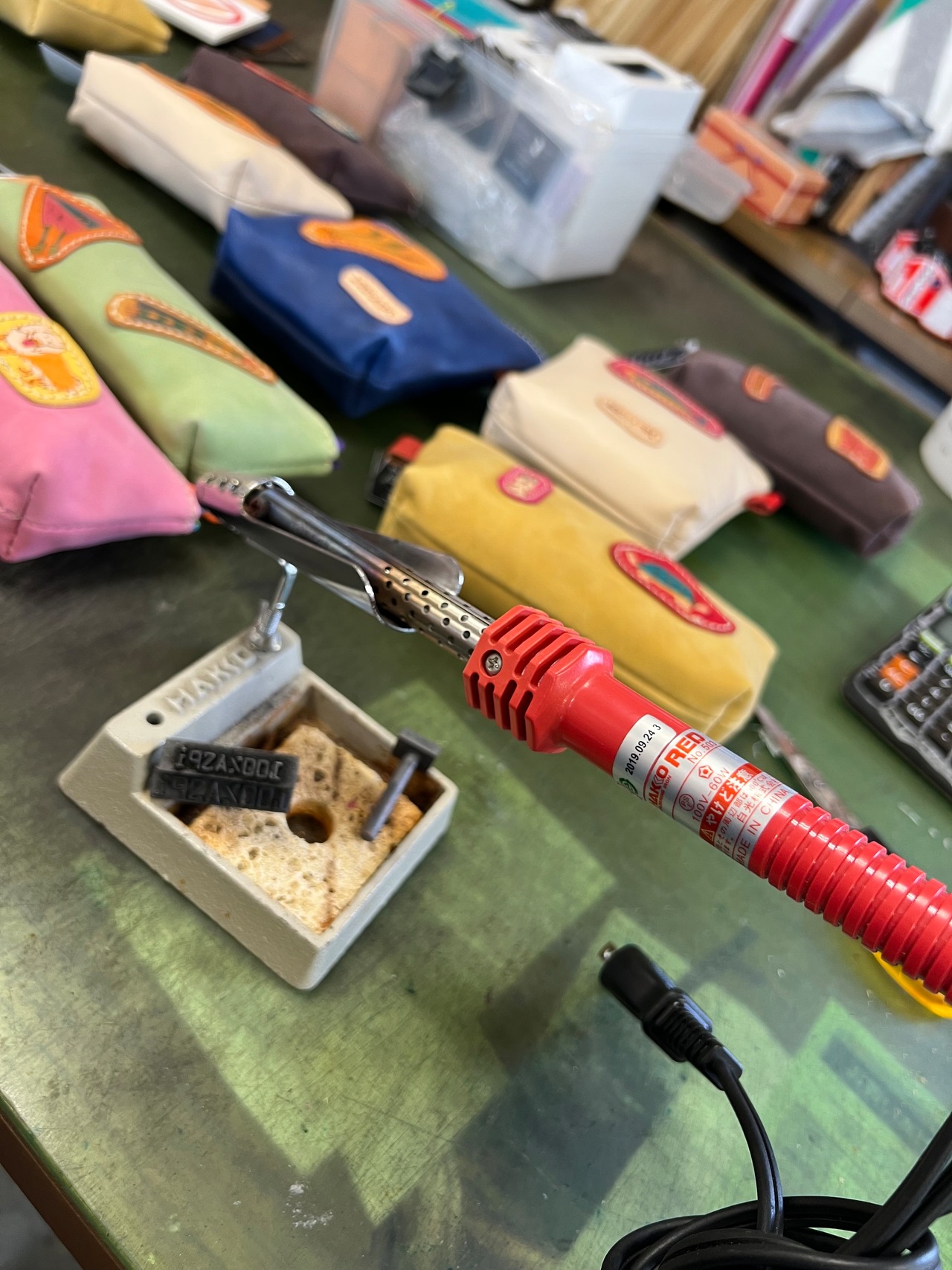 革ワッペンはヌメ牛革に電気ペンで絵を描き、革専用の染料で着色しています。